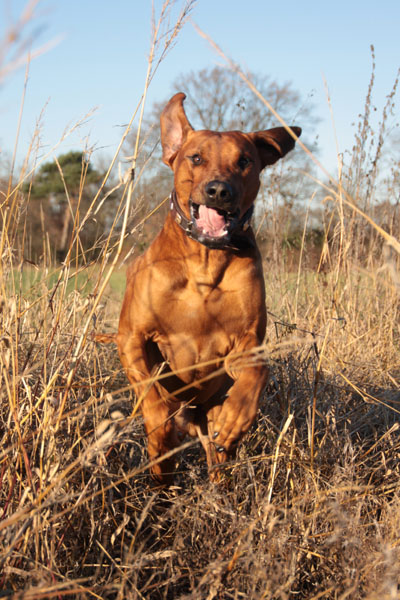 Und wenn er dann zufrieden ist, kullert er sich über den Rasen. Ganz ehrlich und unter uns ... So ganz normal scheint Qhubi als Ridgeback auch nicht im Kopf zu sein. ;-) |